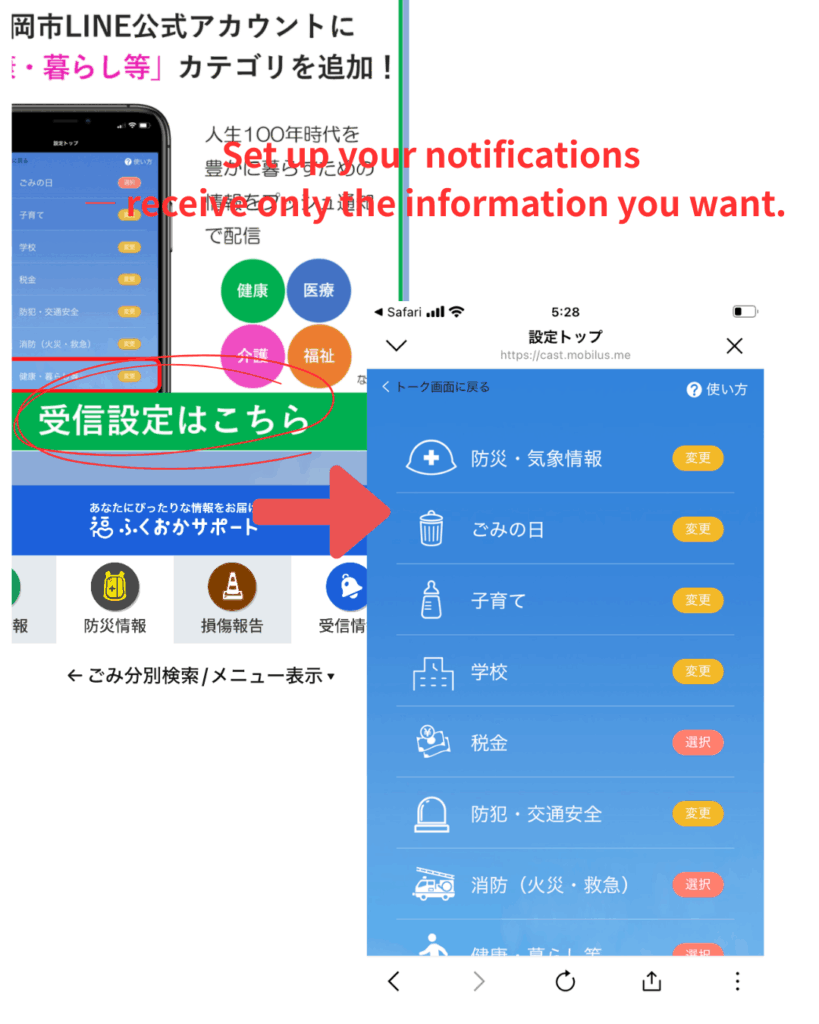 Just adding the Fukuoka City or Yokatopia Foundation LINE account does not mean you will receive all useful updates.