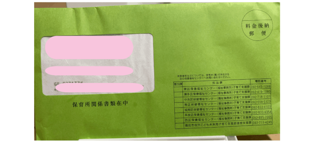 現況届(げんきょうとどけ)は、保育園の先生から直接もらいます。郵便で届くこともあります。